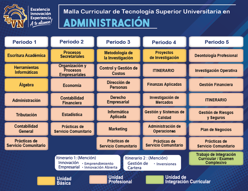 Título: Tecnólogo/a Superior Universitario/a en Administración, con mención en Innovación Empresarial y/o Gestión de Cartera